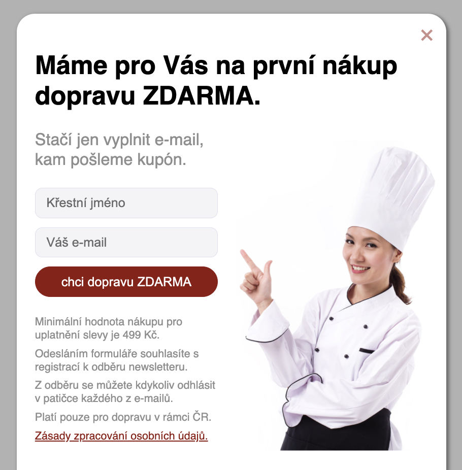 - Do formuláře stačí vyplnit křestní jméno a e-mailovou adresu, na kterou vám zašleme slevový kupon.