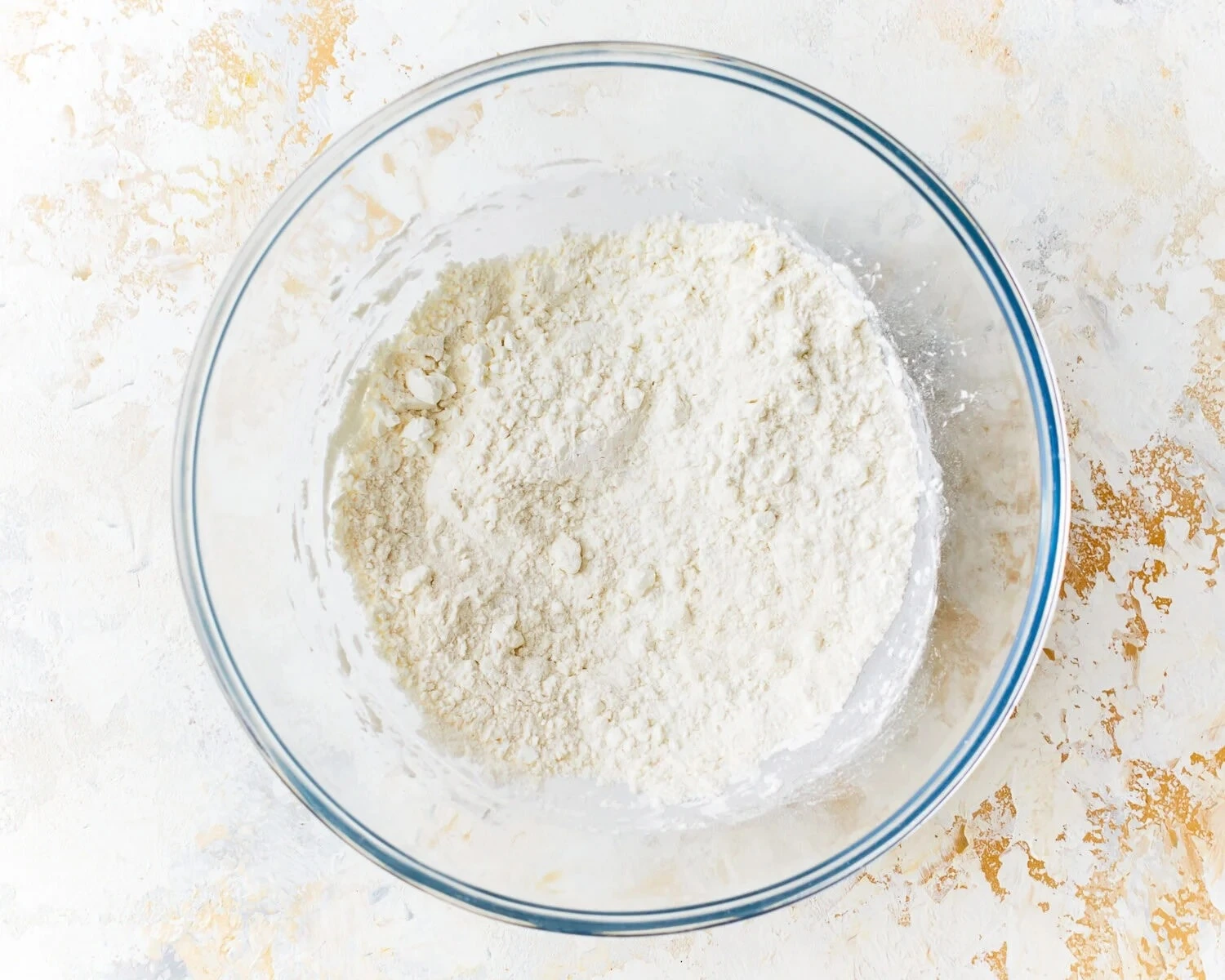 - Ve větší míse smíchejte rýžovou mouku, kukuřičný škrob, sůl a kypřicí prášek tak, aby byly suché ingredience rovnoměrně propojené.