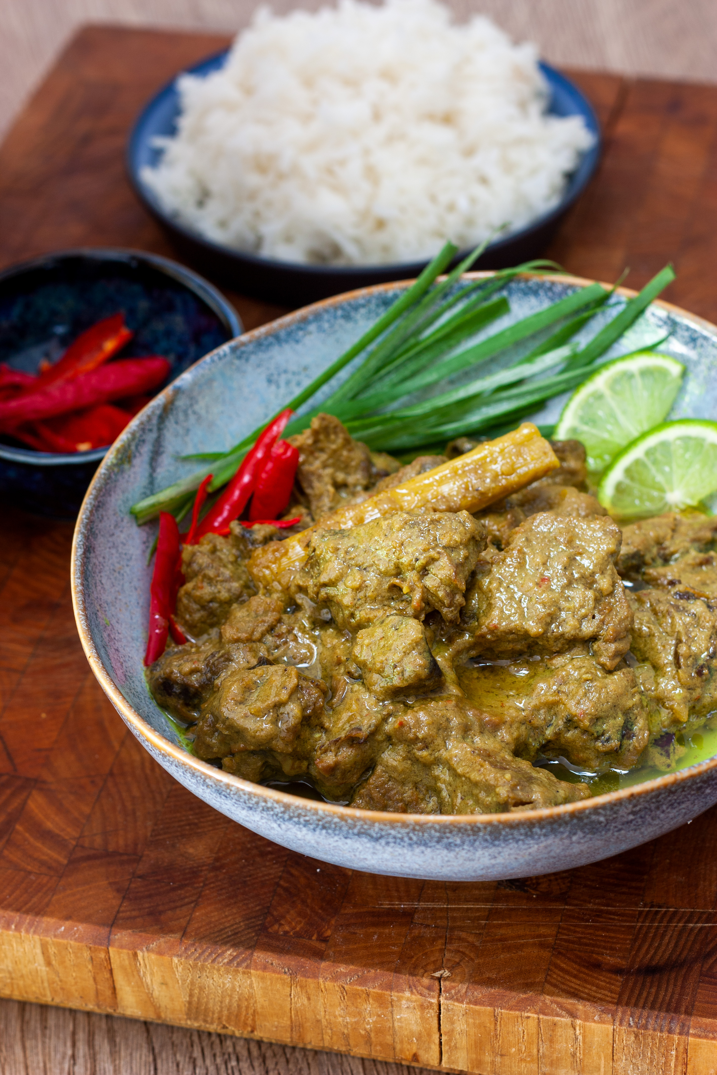 Rendang patří mezi nejvýraznější pokrmy jihovýchodní Asie. Nejde o klasické kari, ale o techniku dlouhého a pomalého vaření, při kterém se maso dusí v kořenící pastě a kokosovém mléce, jež se postupně zredukuje do tmavé, husté a maximálně aromatické omáčky. Výsledkem je hluboká, kořeněná chuť s jemnou sladkostí, citrusovým podtónem a vyváženou pálivostí.