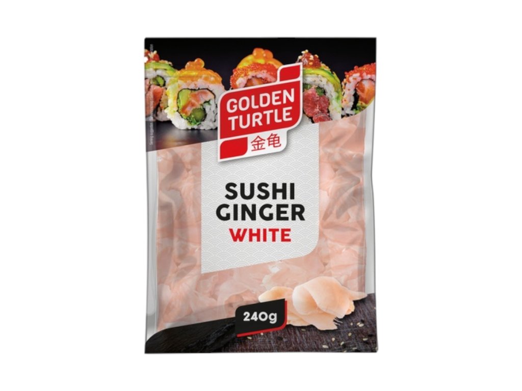 Bílý zázvor na Sushi je nepostradatelnou součástí japonské kuchyně. Jedná se o tence nakrájené plátky zázvoru, které jsou naložené v jemném nálevu. Tento produkt se vyznačuje svěží, mírně pikantní chutí a charakteristickou bledě růžovou až bílou barvou.