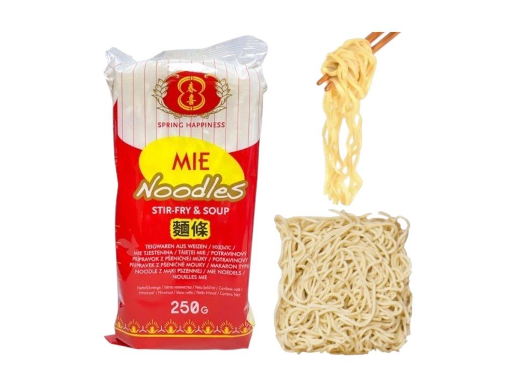 Čínské vaječné nudle Mie jsou tradiční asijskou pochoutkou, oblíbenou pro svou jemnou chuť a všestranné použití. Tyto nudle jsou vyrobeny z pšeničné mouky a vajec, což jim dodává charakteristickou žlutou barvu a pružnou texturu. Jsou ideální pro přípravu různých asijských pokrmů, od polévek až po smažené nudle.