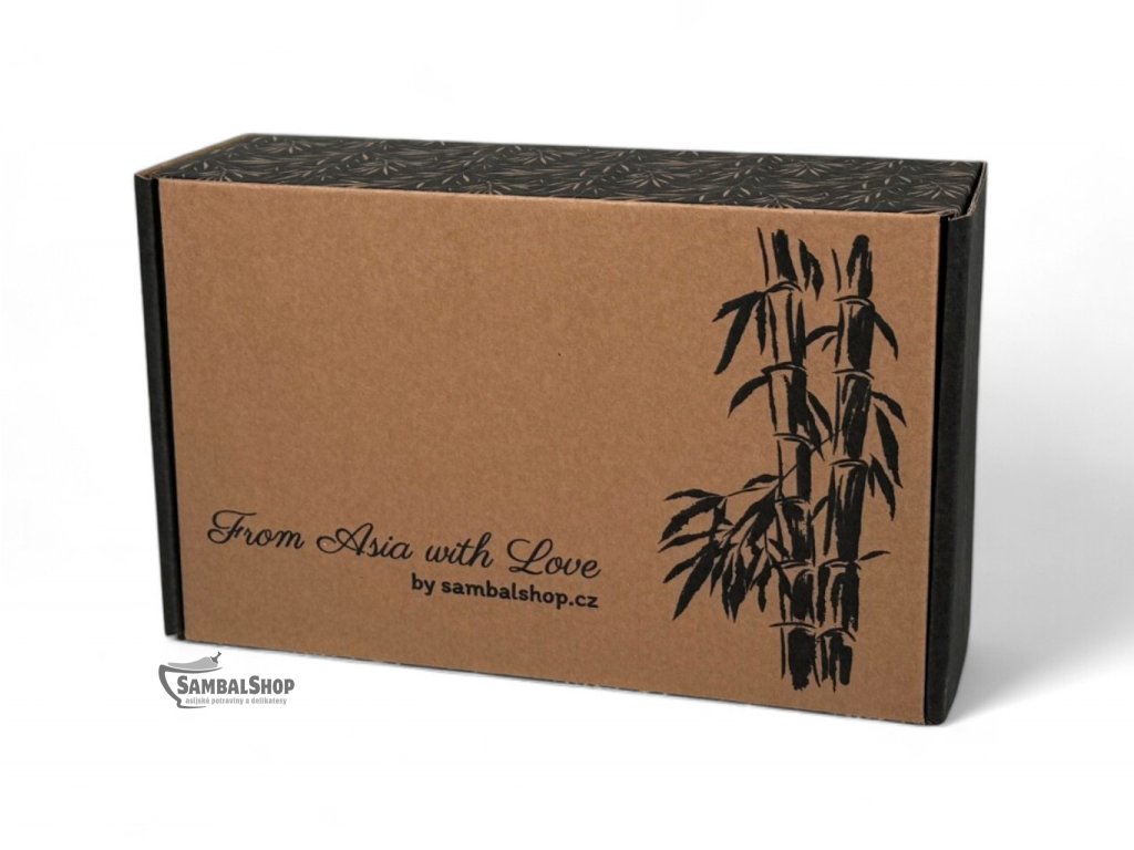 Elegantní dárková krabička s tradičním asijským designem inspirovaným bambusem, která celé sadě dodává prémiový vzhled. Bambus v asijské symbolice představuje odolnost a sílu – vlastnosti, které perfektně vystihují charakter obsažených omáček. Krabička je navržena tak, aby bezpečně uchovala obě lahvičky Sriracha omáček a zároveň fungovala jako atraktivní dárkové balení s výrazným asijským charakterem.