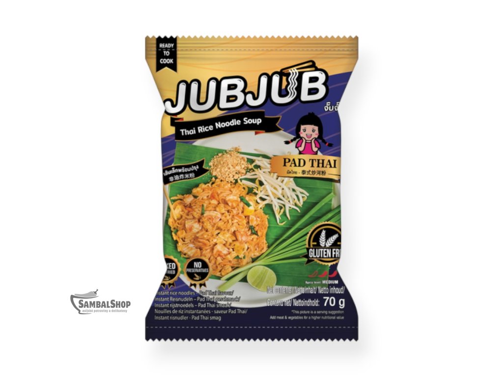 Značka JUB JUB se již léta těší oblibě mezi fanoušky asijské kuchyně díky své schopnosti zachytit autentické chutě jihovýchodní Asie v praktické instantní formě. Verze Pad Thai je ideální volbou pro všechny, kdo chtejí ochutnat legendární thajský pokrm rychle a bez náročné přípravy, ať už doma, v práci nebo na cestách.
