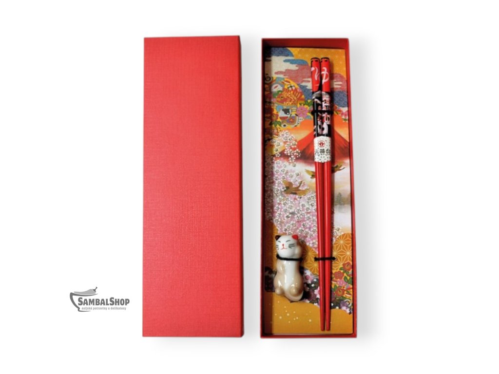 Jídelní hůlky v dárkovém balení s podložkou Lucky Cat - Tradice a štěstí na jednom místě