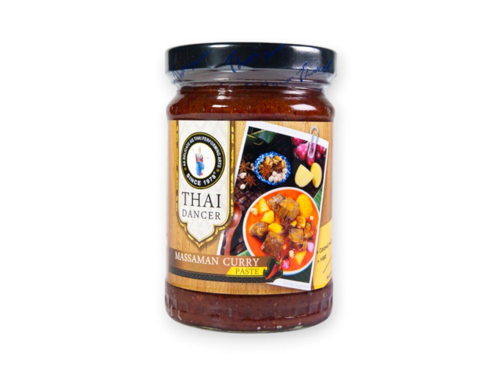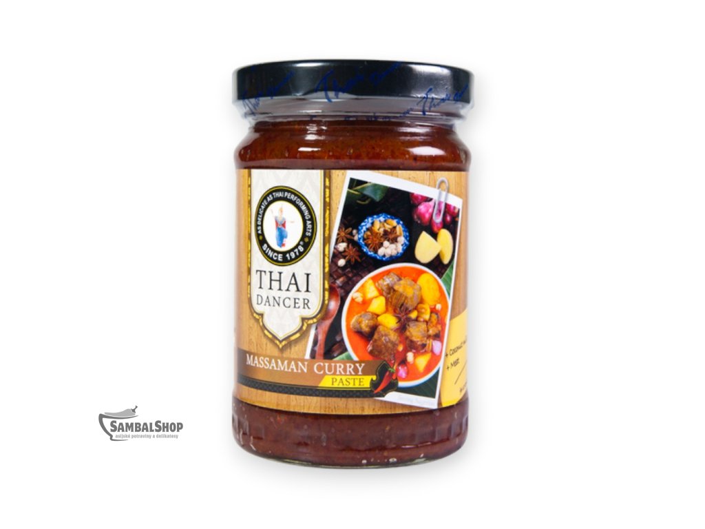 Massaman Curry pasta je aromatická směs koření a dalších ingrediencí, která tvoří základ oblíbeného thajského pokrmu. Tato pasta se vyznačuje bohatou, komplexní chutí s náznaky sladkosti a jemné pikantnosti. Hlavními složkami jsou typicky červené chilli, citronová tráva, galangal, koriandr, skořice a tamarind.
