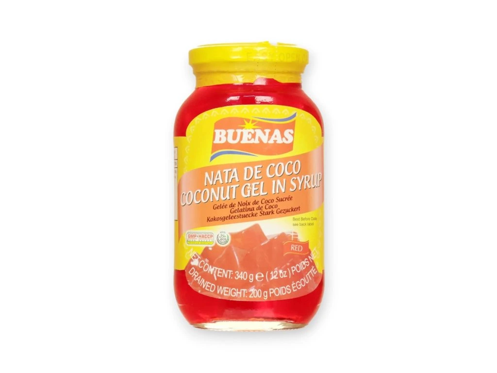 Kokosové želé Nata De Coco – červené je oblíbená asijská pochoutka vyráběná z fermentované kokosové vody, která se vyznačuje jemně sladkou chutí a charakteristickou želé strukturou. Díky lehké konzistenci a nenápadnému kokosovému profilu se snadno kombinuje s dalšími surovinami a nabízí široké využití v moderní gastronomii.