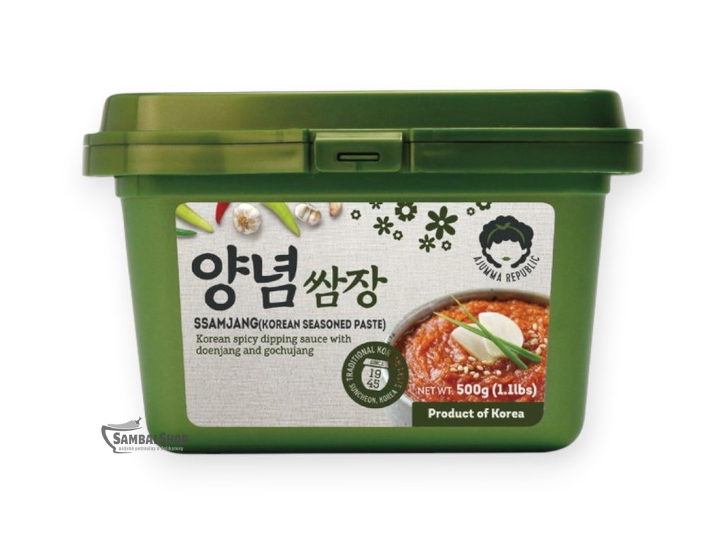 Korejská pasta Ssamjang představuje jednu z nejvýznamnějších a nejuniverzálnějších omáček korejské gastronomie. Tato tradiční fermentovaná pasta je vyrobena s vysokým obsahem sójové pasty (přes 63 %) obohacené o červené chilli, česnek a cibuli, což jí dodává charakteristickou bohatou umami chuť s jemnou pálivostí.