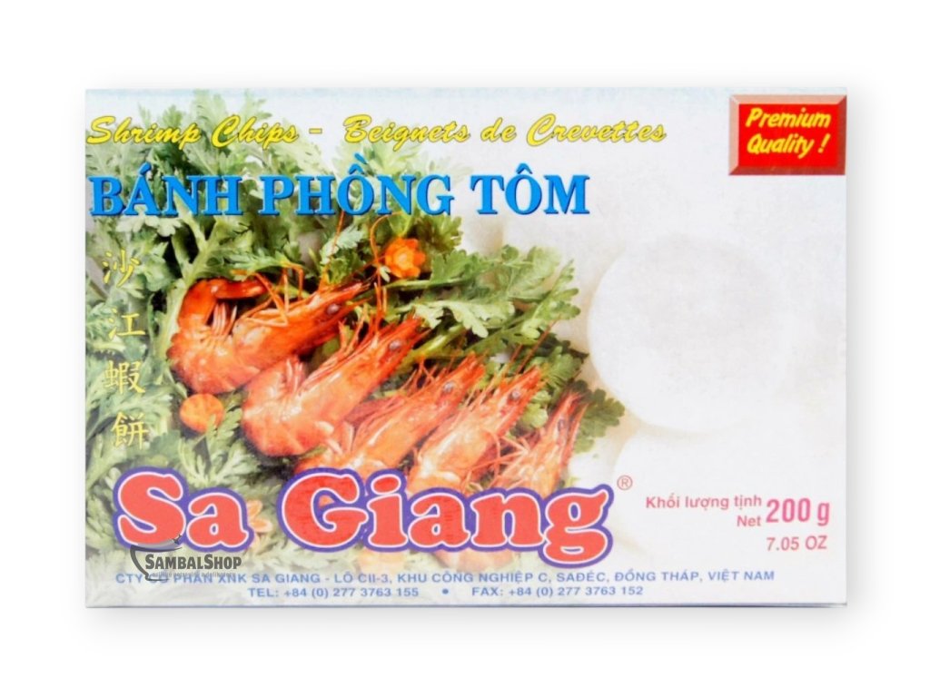 Krevetové chipsy Sa Giang jsou tradiční vietnamskou pochoutkou, oblíbenou po celé jihovýchodní Asii. Tyto křupavé chipsy jsou vyrobeny z krevetové pasty, tapiokového škrobu a koření. Vyznačují se intenzivní krevetovou chutí a lehkou texturou, která je činí ideálním doplňkem k různým pokrmům nebo jako samostatnou svačinku.