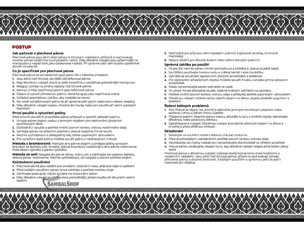 Představujeme vám profesionálně zpracovaný tištěný návod na správnou péče a údržbu plechových pánví. Tento detailní průvodce obsahuje veškeré potřebné informace pro maximální využití vašich kuchyňských nástrojů při přípravě autentických asijských pokrmů, které vyžadují specifické teplotní podmínky a techniky vaření.
