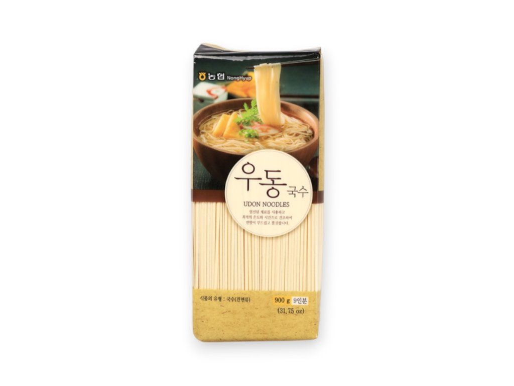 Tyto nudle jsou korejskou sušenou variantou s mírně plošším tvarem, zatímco klasické udon bývají často silnější a předvařené.