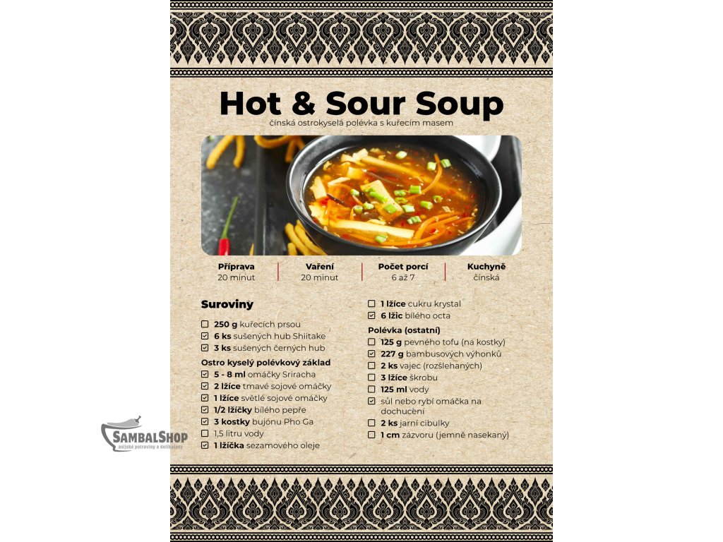Originální sada na přípravu čínské ostro kyselé polévky Hot & Sour Soup, která obsahuje všechny potřebné základní suroviny a doplňky. Součástí sady je také jednoduchý a...