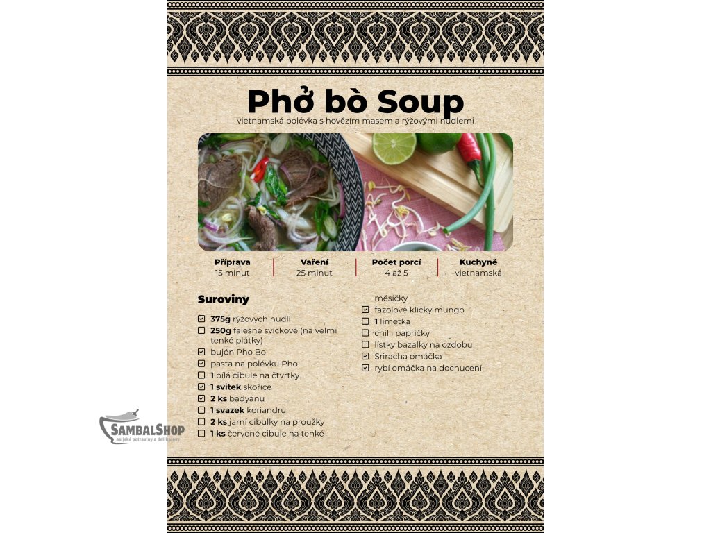 Originální sada na přípravu vietnamské hovězí polévky Phở bò, která obsahuje všechny potřebné základní suroviny a doplňky. Součástí sady je také jednoduchý a srozumitelný...