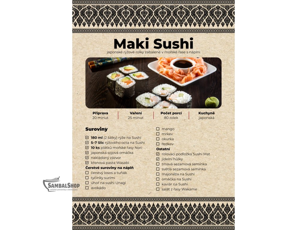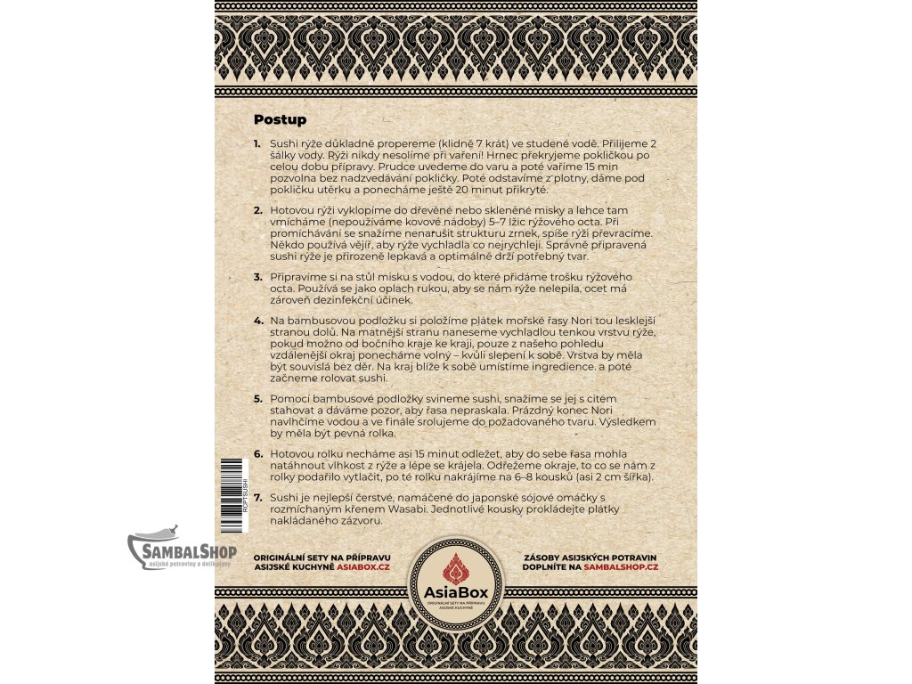 Originální sada na přípravu japonského národního jídla Sushi, která obsahuje všechny potřebné základní suroviny a doplňky. Součástí sady je také jednoduchý a srozumitelný...