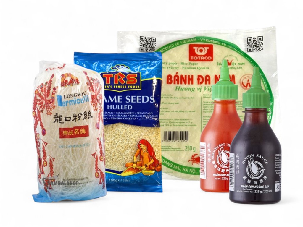 Kvalitní skleněné nudle Vermicelli tvoří základnu plnění vietnamských letních závitků a přidávají pokrmu charakteristickou texturu. Tyto průhledné nudle vyrobené z mungo fazolového škrobu mají po uvaření lehkou, pružnou konzistenci a téměř neutrální chuť, která dokonale absorbuje chutě ostatních ingrediencí. Vermicelli nudle jsou bezlepkové a rychle se připravují, což z nich činí ideální složku pro zdravé a lehké pokrmy. Po vychladnutí si zachovají svou texturu a nepřipnou k sobě.