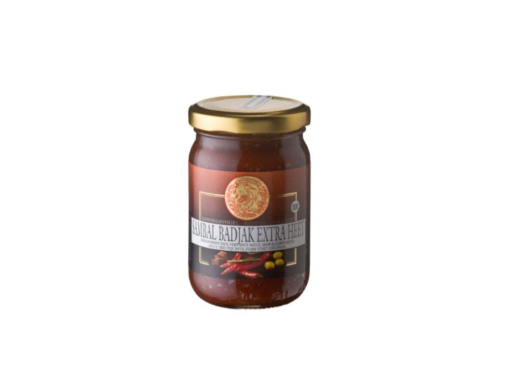 Sambal Badjak Extra Heet je tradiční indonéská pasta vyrobená z mletých chilli papriček a dalších ingrediencí. Tato extra pálivá verze je určena pro milovníky opravdu ostrých chutí. Pasta má hustou konzistenci a intenzivní červenou barvu.