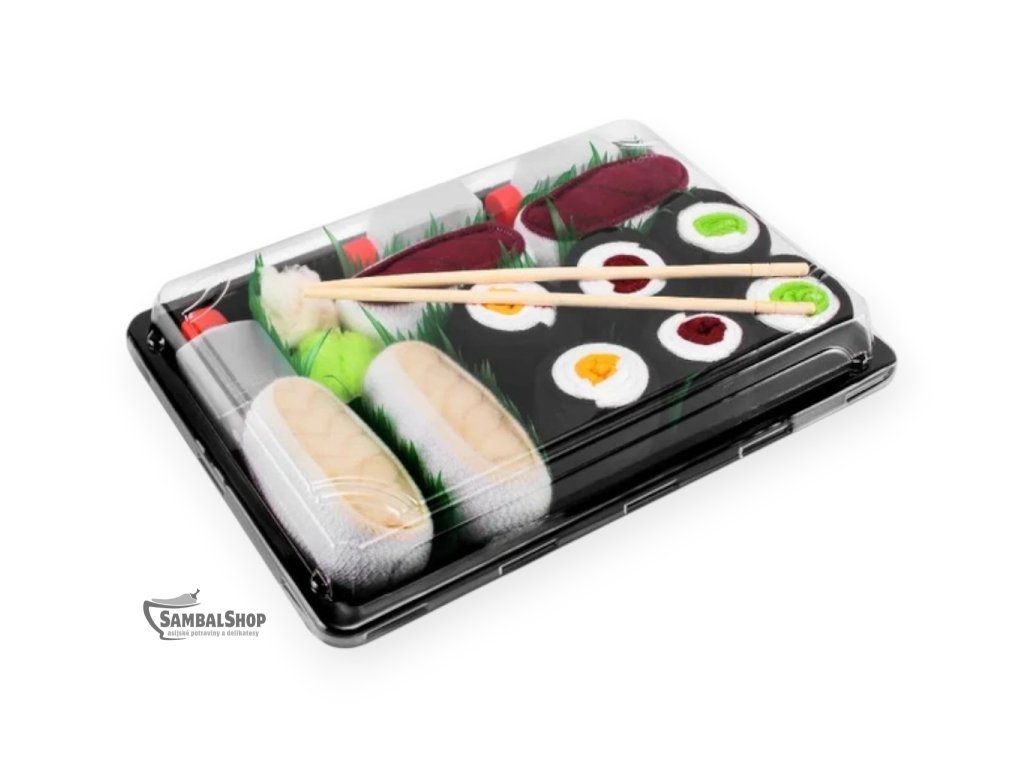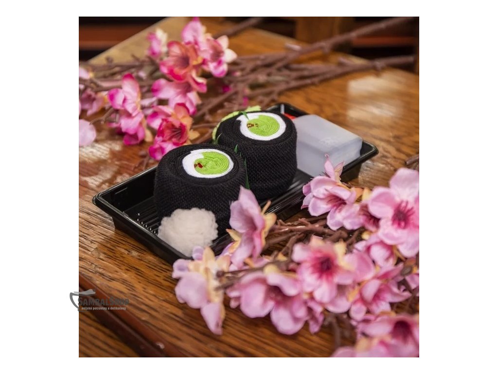 - 3x Maki – tři páry ponožek svinutých jako klasické sushi rolky obalené nori řasou, které vytváří autentický vzhled