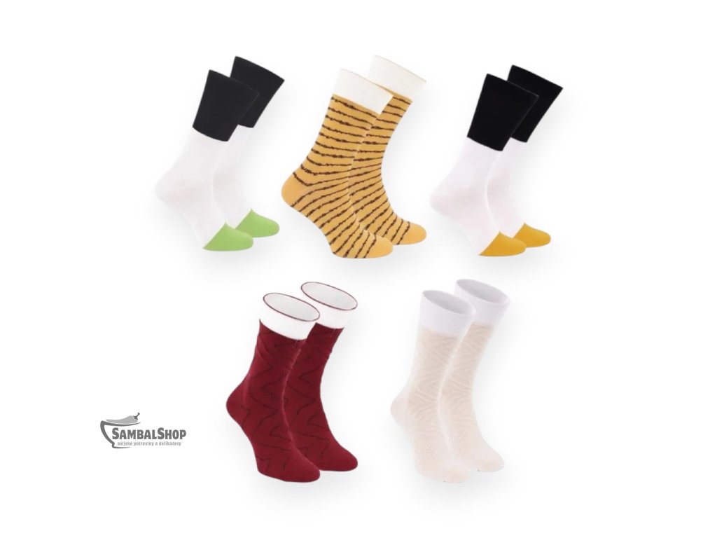 Ponožky mají univerzální design, který ocení jak ženy, tak muži. Barvy a vzory jsou navrženy tak, aby vyhovovaly širokému spektru preferencí a osobních stylů.