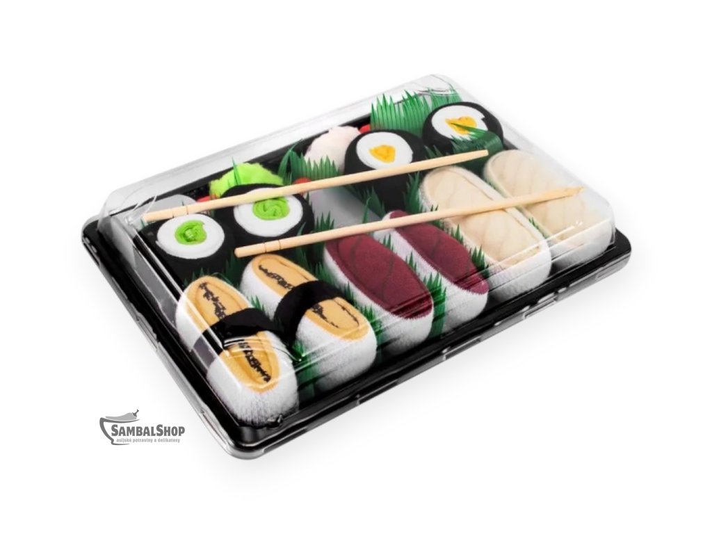 Ano! Ponožky jsou dodávány v autentickém sushi boxu kompletním se zázvorem a wasabi, což z nich dělá efektní dárek připravený k darování bez nutnosti dalšího balení. Otevření boxu je zážitkem samo o sobě!
