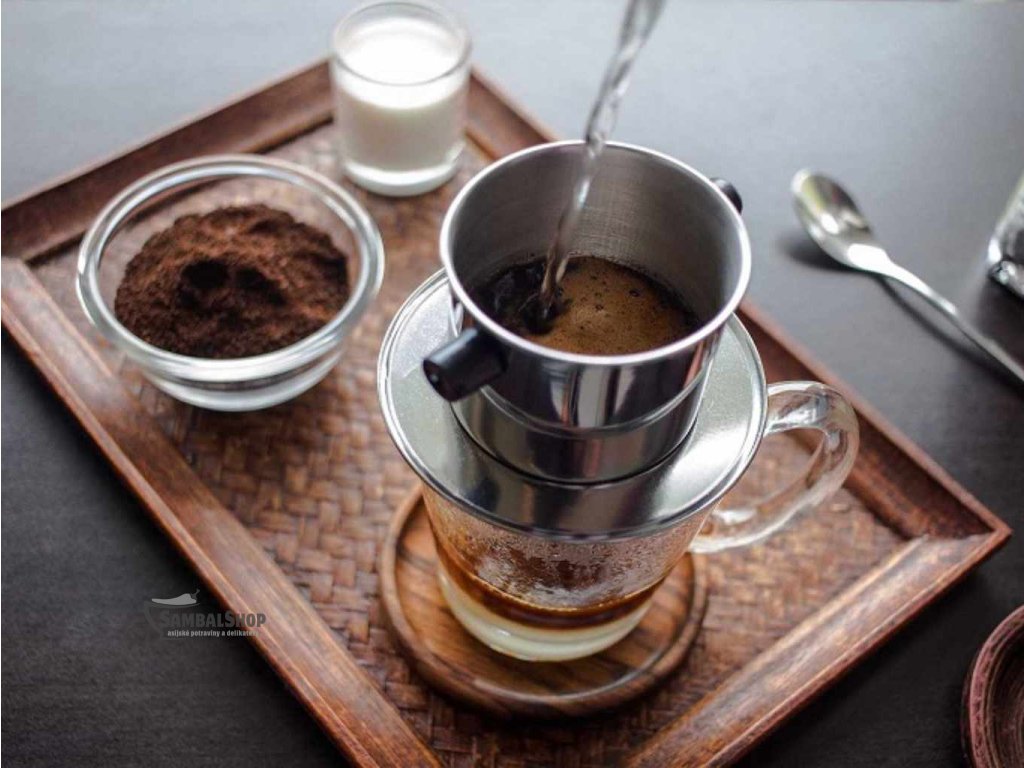- Tradičně se podává s slazeným kondenzovaným mlékem (cà phê sữa), případně na ledu (cà phê sữa đá).