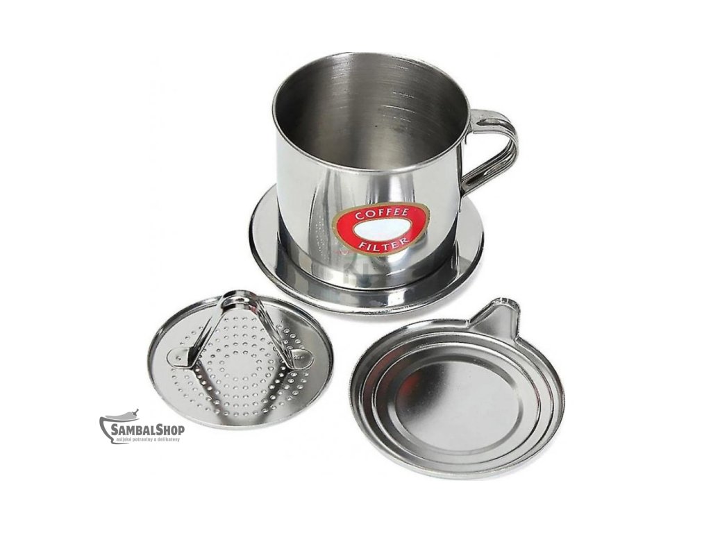 Návod k použití1. Do kávového Phin filtru vložte cca 3 lžičky mleté kávy a lehce přitiskněte sítkem 2. Filtr položte na šálek a mírně zvlhčete horkou vodou vloženou kávu 3. Po cca 20 sekundách můžete celý Phin filtr naplnit horkou vodou a přikrýt pokličkou 4. Zhruba po 5 minutách dojde ke kompletnímu prokapání vody skrze kávu 5. Odstraňte filtr a vychutnejte si kávu! |