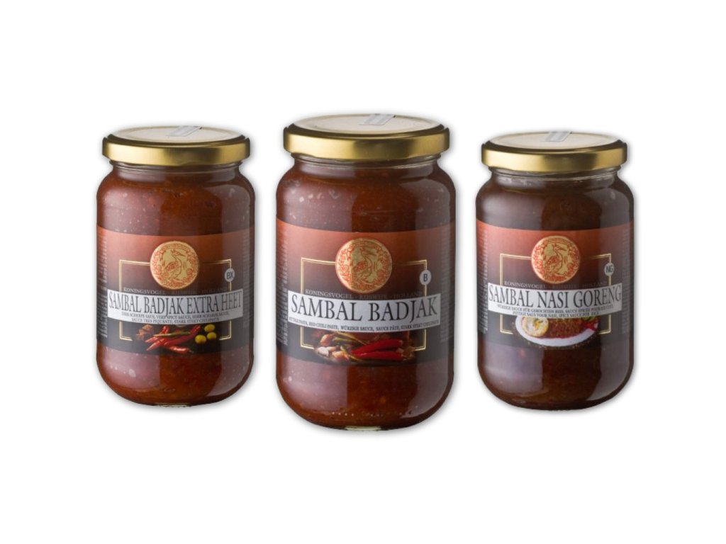 Představujeme vám exkluzivní sadu indonéských sambalů - tradiční pikantní pasty, které jsou základem autentické asijské kuchyně. Tato pečlivě sestavená kolekce obsahuje tři nejoblíbenější varianty sambalů, které promění vaše pokrmy v kulinářský zážitek. Sambaly se vyrábí z kvalitních ingrediencí podle tradičních receptur a jsou nepostradatelným ochucovadlem v kuchyních jihovýchodní Asie.