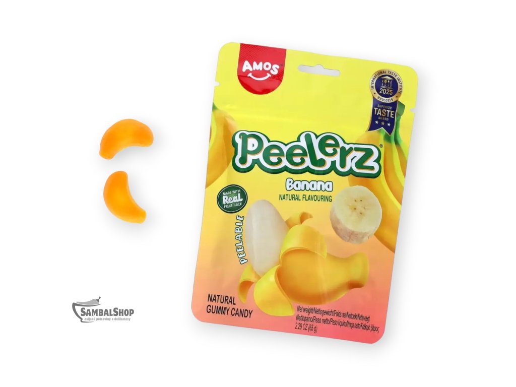 Zelé loupací bonbony Peelerz – Banán spojují autentickou banánovou chuť, měkkou želé texturu a interaktivní efekt loupání. Díky obsahu ovocné šťávy a absenci tuku představují moderní a atraktivní sladkost s vysokým zážitkovým potenciálem. Jedná se o originální asijský snack, který zaujme chutí i formou konzumace.