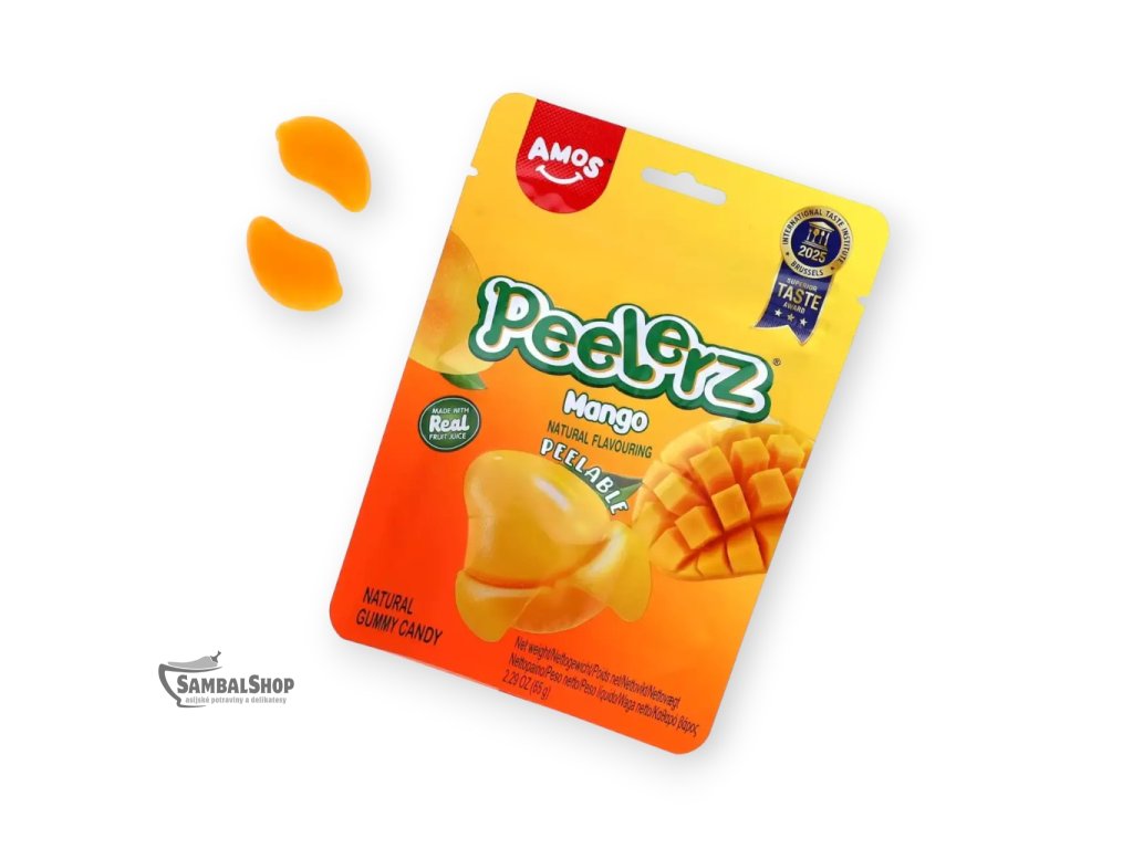 Želé loupací bonbony Peelerz – Mango představují originální a hravou sladkost, která kombinuje zábavu s výraznou ovocnou chutí. Každý bonbon je tvarovaný jako mango a nabízí jedinečný koncept „oloupej a sněz“, díky kterému se konzumace stává zážitkem, nikoli jen rychlou sladkou tečkou. Uvnitř se ukrývá měkké a šťavnaté mangové želé s autentickou ovocnou chutí.